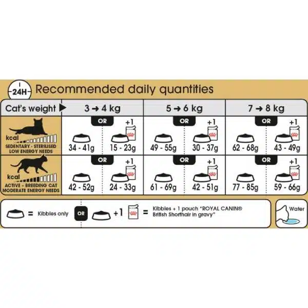این محصول یک غذای کامل و متعادل مخصوص گربههای بالغ نژاد بریتیش شرتهیر است. بریتیش کتها به دلیل بدنی عضلانی، اشتهای خاص و نیاز به مراقبت از پوست و مو، به یک رژیم غذایی ویژه نیاز دارند.